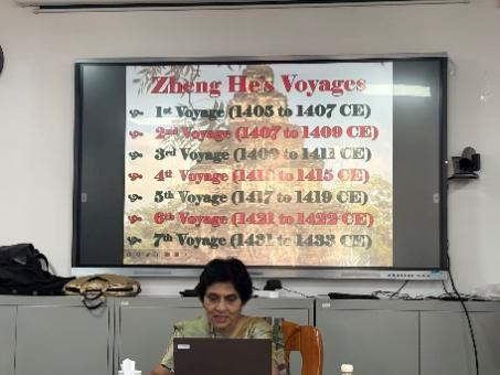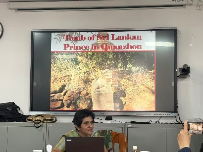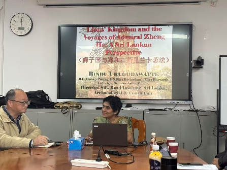 2025年12月3日,斯里兰卡知名汉学家、斯里兰卡丝绸之路研究所主任、斯里兰卡皇家亚洲学会荣誉编委宾度(Bindu Uruodawatte)为露出自慰 师生作题为“狮子国与郑和:斯里兰卡的想法”的专题报告。宾度老师毕业于北京大学考古系,主要研究丝绸之路的佛教考古。本次讲座由沐涛教授主持,李鹏涛、姚昱、朱明等多位老师及历史学等专业的学生到场聆听。